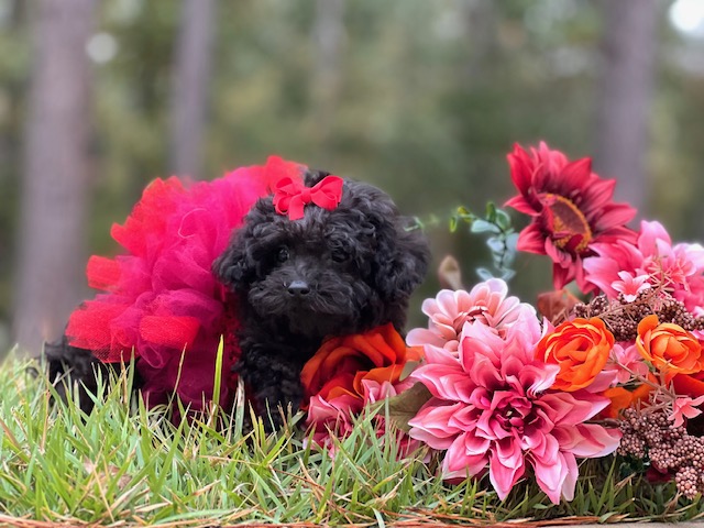 $2,000.00Click Here: More About TwinkleMeet Twinkle, a tiny black Poodle princess who looks like she popped straight out of a Christmas fairy tale—complete with her dazzling red tutu and bow. With her petite little body and teddy-bear face, she’s basically a sugarplum come to life. Twinkle is gentle, snuggly, and adorably curious. She loves perching on your lap like it’s her royal throne and greeting the world with her “I’m cute and I know it” sparkle. She’d make a wonderful companion for any family wanting a sweet, affectionate, and delightfully festive little shadow. If you want a dog who brings holiday cheer 365 days a year… Twinkle is your girl.