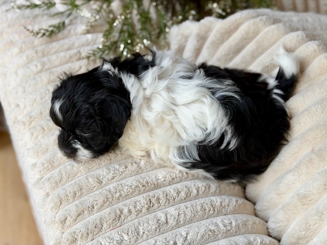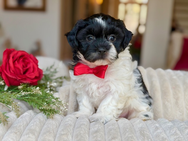 Hi, I’m Gatsby 🖤🤍—a dapper little Shih-Chon with tuxedo style and a heart full of sweetness. I’m smart, eager to please, and always figuring out how to be exactly where the love (and snacks) are. I’ve got gentle manners, a playful spark, and just enough charm to make you laugh daily. If you’re looking for a tiny gentleman who’s equal parts cuddle bug and clever sidekick, I’m your guy. 🐾✨