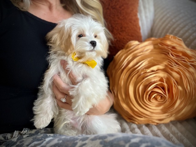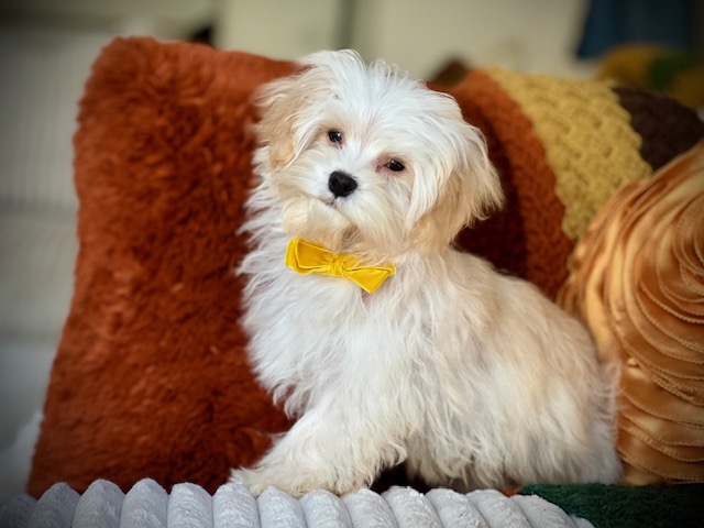 $2,300.00Click Here: More About MinnieThis precious angel is a tiny Mal-Shih puppy. She looks like a big puff ball in her pictures, but she’s really a tiny little puff ball in person, but with just really good hair!! Minnie may be the tiniest pup around, but definitely has an outgoing personality. She is super sweet and fun! Mal-Shi lh are smart, hypoallergenic and low to non-shedding, yippee!! I’m so proud of her!