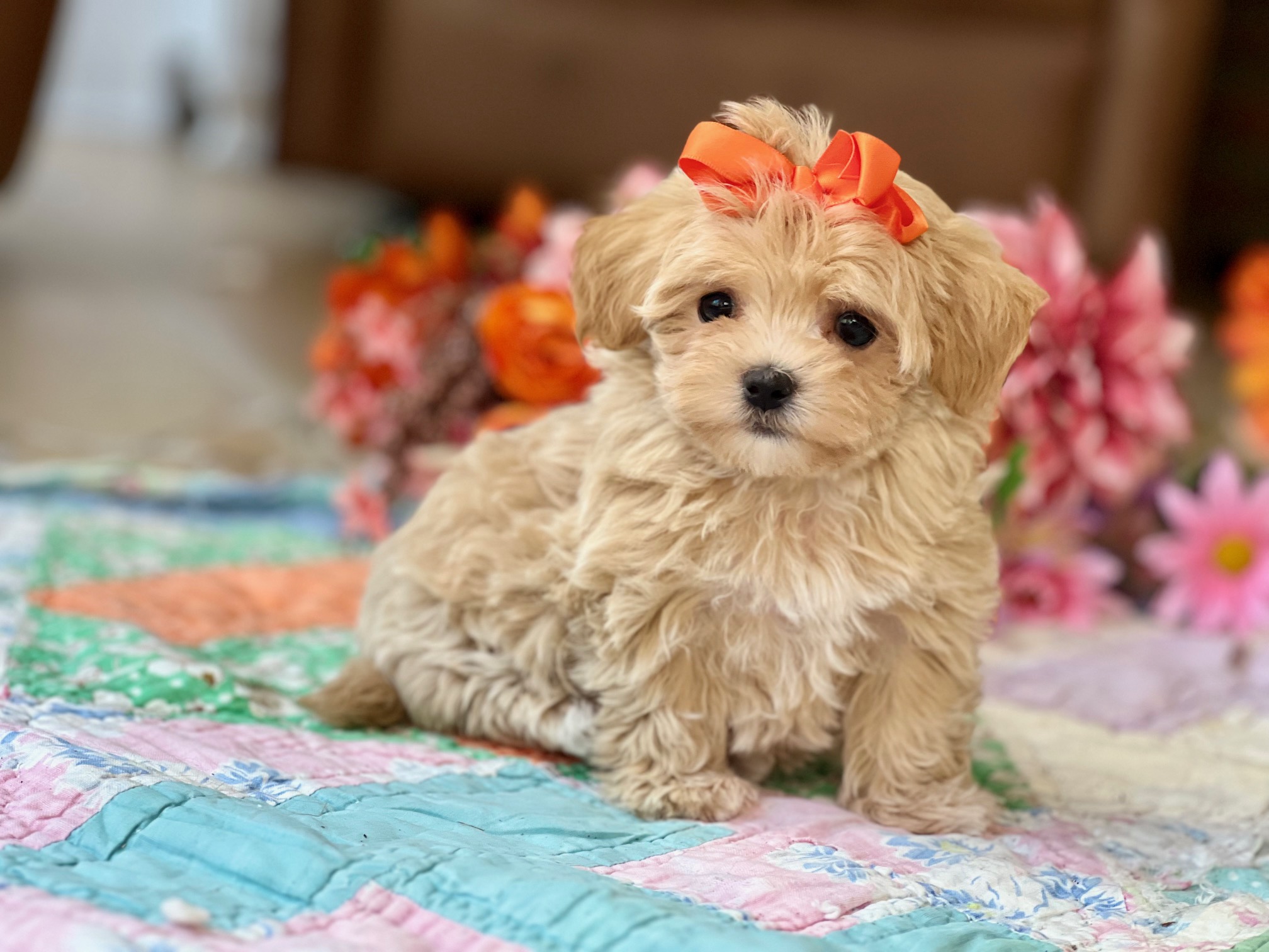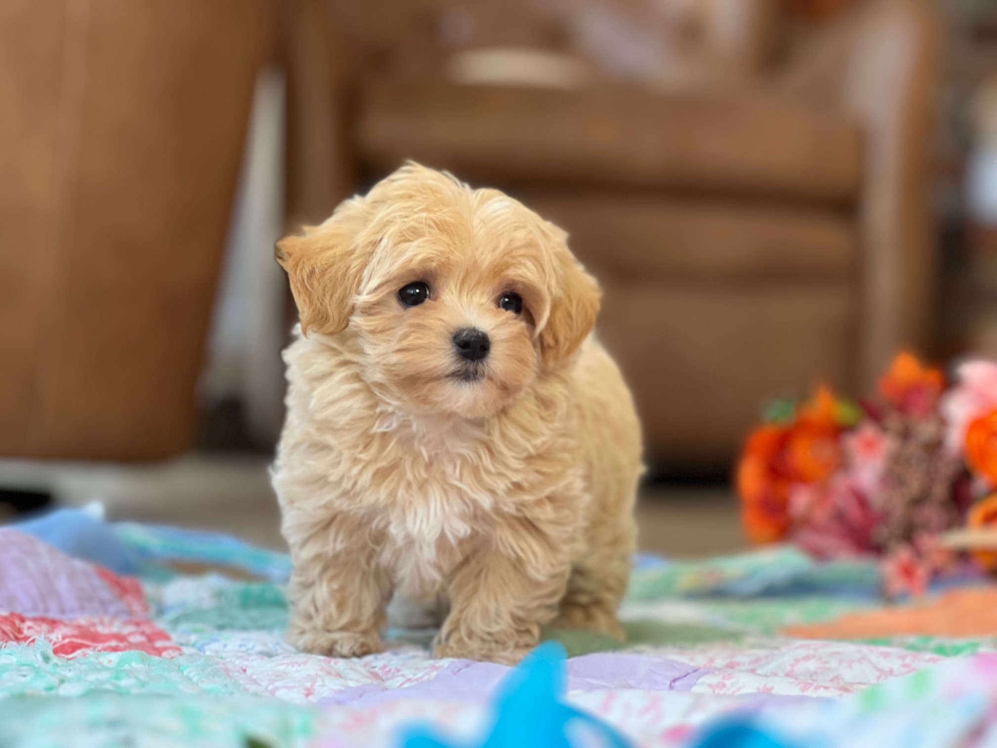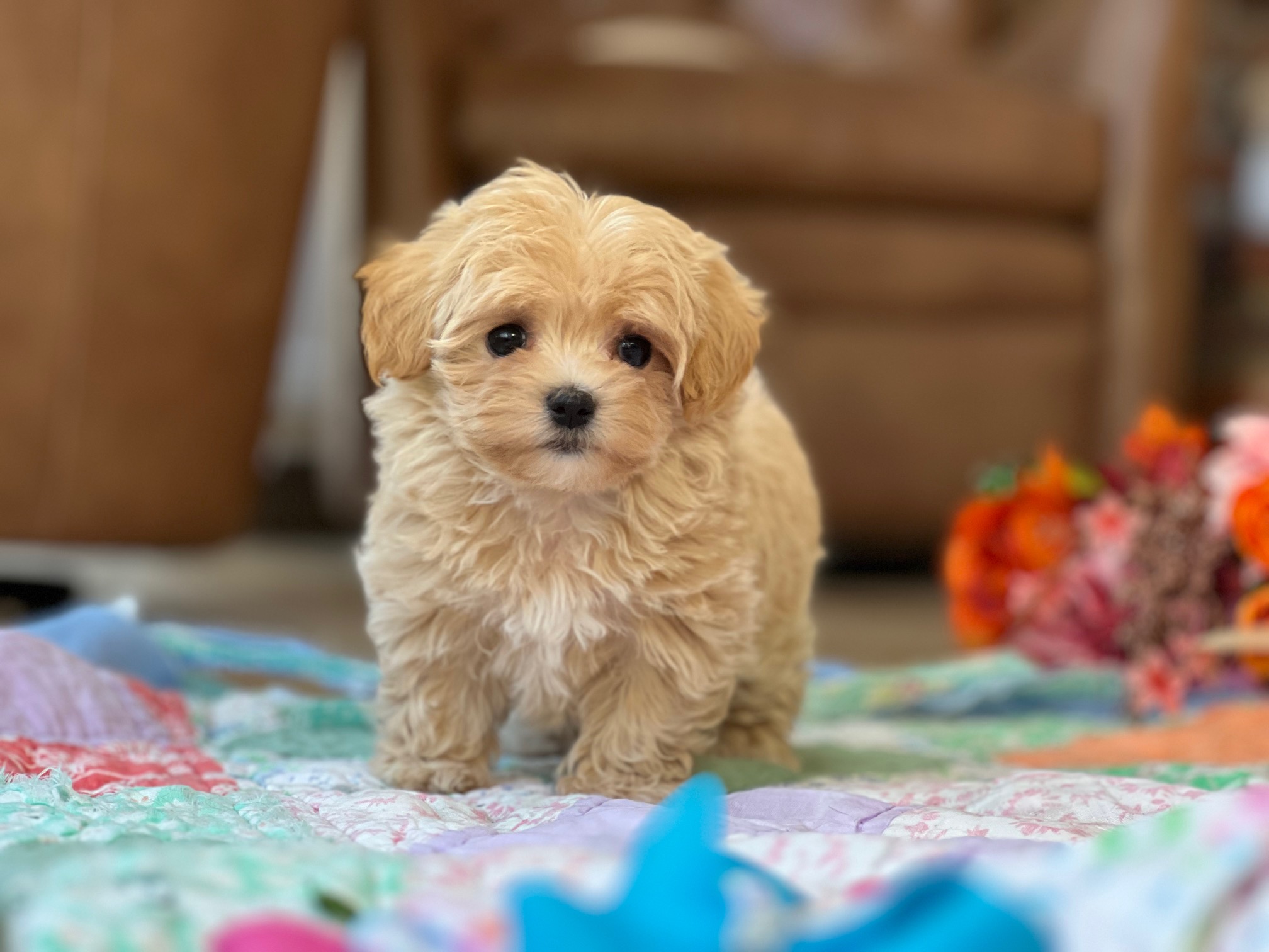 Meet Barbie Doll, a petite apricot Maltipoo whose tiny features and soft, fluffy coat make her look like she just stepped out of her own little puppy dreamhouse. She’s sweet, loving, and has that “pick me up and cuddle me” vibe that no one can resist—very on-brand for a girl named Barbie Doll. With her gentle nature and playful spirit, she’ll keep your home filled with giggles. Maltipoos make wonderful family companions thanks to their affectionate temperaments and easygoing personalities, and Barbie Doll is the perfect example wrapped in apricot fluff.