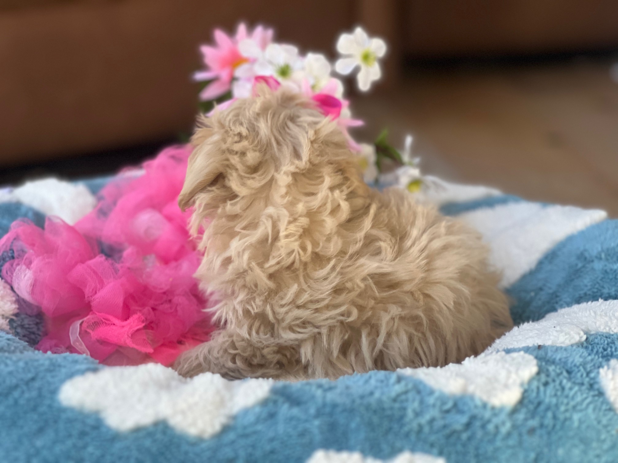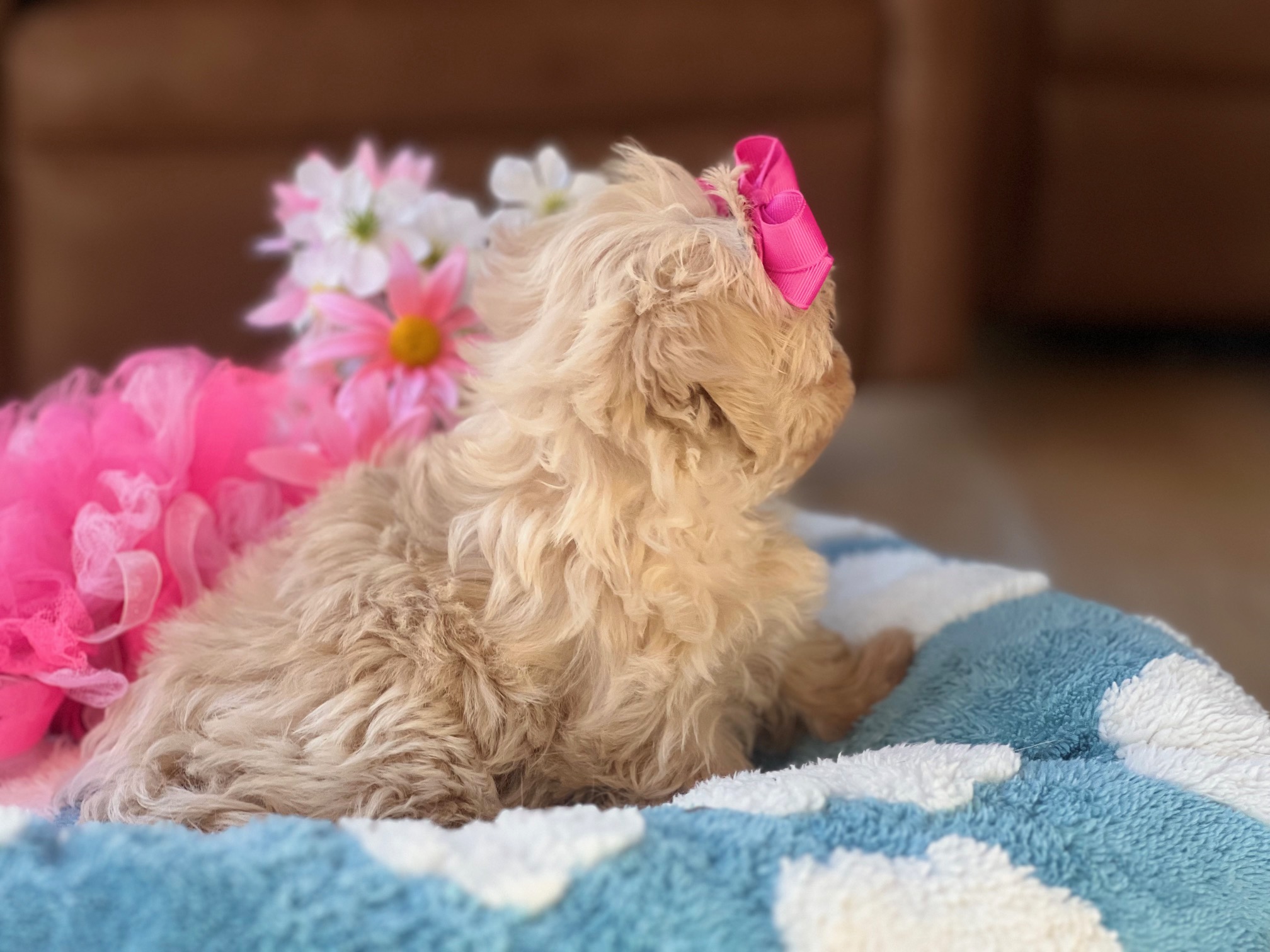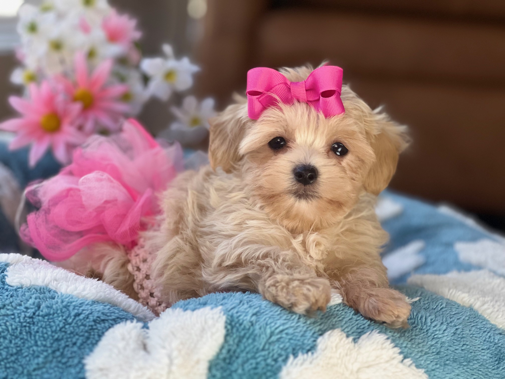 Meet Barbie Doll, a petite apricot Maltipoo whose tiny features and soft, fluffy coat make her look like she just stepped out of her own little puppy dreamhouse. She’s sweet, loving, and has that “pick me up and cuddle me” vibe that no one can resist—very on-brand for a girl named Barbie Doll. With her gentle nature and playful spirit, she’ll keep your home filled with giggles. Maltipoos make wonderful family companions thanks to their affectionate temperaments and easygoing personalities, and Barbie Doll is the perfect example wrapped in apricot fluff.