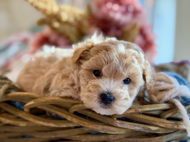 $2,300.00Click Here: More About BeauHi, I’m Beau 🤍 I’m a little Maltipoo with soft, cozy curls, big dark eyes, and a teddy bear look that tends to make people smile without even trying. I love being close, soaking up attention, and quietly becoming your favorite part of the day — the kind of cuddle buddy who makes a house feel like home.