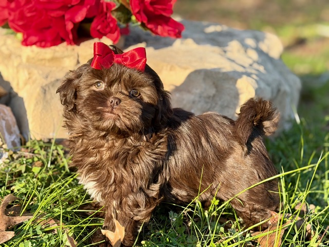 $2,000.00Click Here: More About Daisy- This little Shih-Poo is named Daisy — short legs, compact body, and light eyes that are always taking everything in. She’s curious, smart, and happily outgoing, the kind of puppy who wants to be part of whatever’s happening. Daisy has a funny, confident attitude that makes it clear she may be small, but she’s definitely in charge. 🌼
