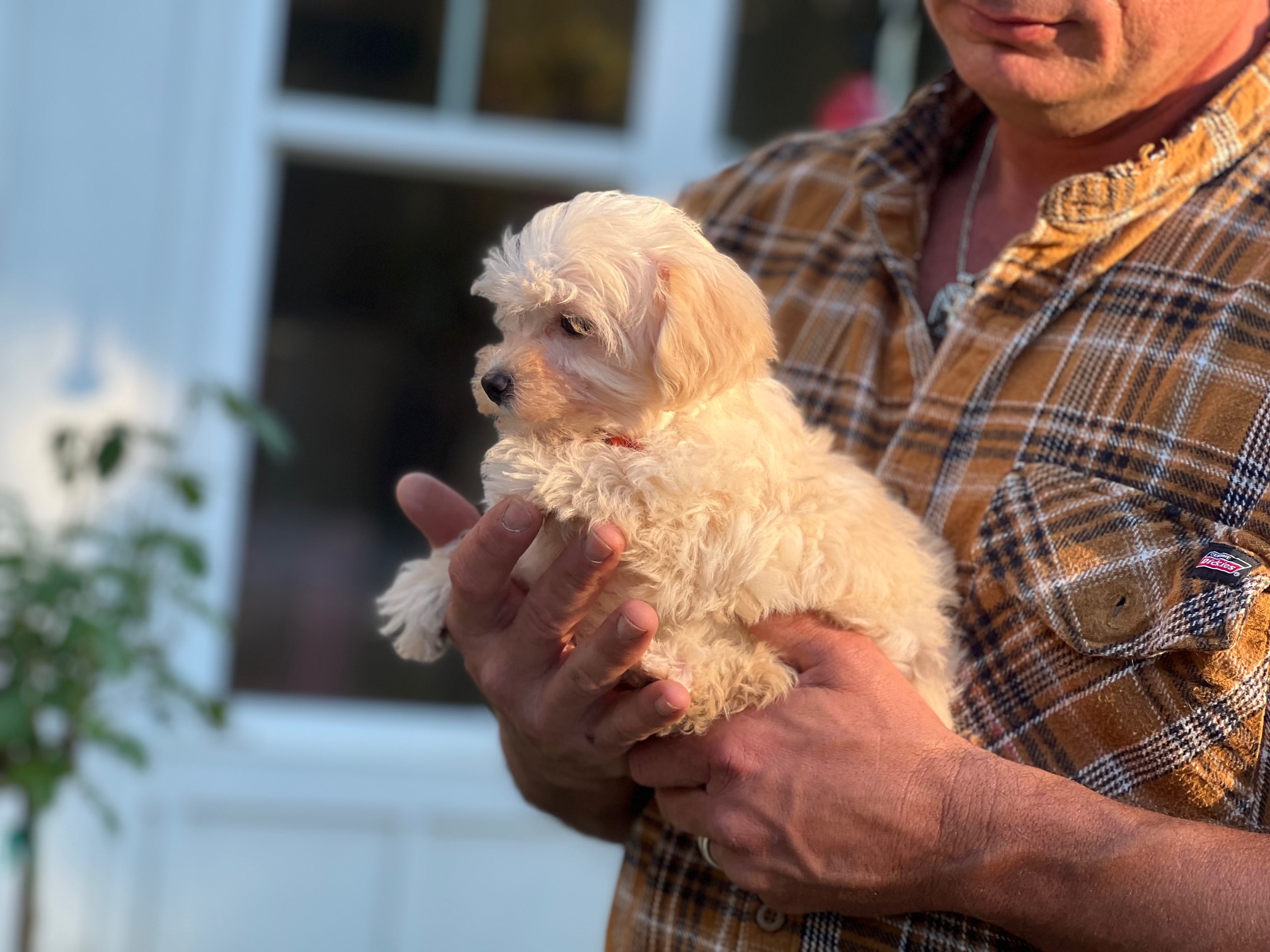$1,800.00Click Here: More About Charlie SnowflakeHi… um, I’m Charlie Snowflake—but you can just call me Charlie. I’m a little Maltipoo boy with a soft, fluffy coat and a heart that basically jingles with sweetness. I might be a tiny bit shy at first, but that just means I like to observe and make sure you’re my kind of human… you know, the cuddly kind. Once I know you’re safe (and maybe have snacks), I turn into the warmest, snuggliest Christmas marshmallow. I’m gentle, polite, and very into curling up on laps like a living holiday decoration. I’d make a great companion because I love quietly hanging out, giving soft kisses, and being your little snowball sidekick. If you want a dog who’s sweet, funny, and charmingly bashful… well… hi. I’m right here.