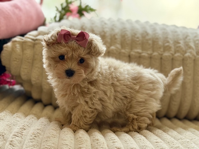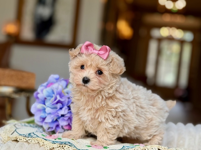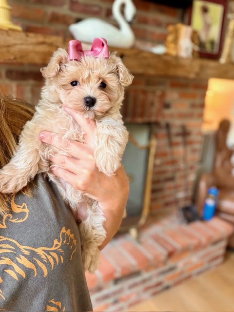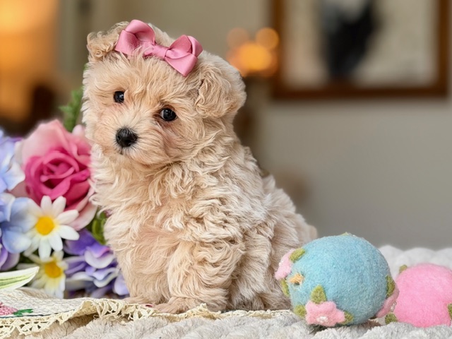 $2,300.00Click Here: More About BellaThis little sweetheart is Bella a charming Maltipoo girl with the perfect mix of cuddly and playful. She loves to be close to her people and will happily soak up snuggles, but she’s just as quick to bounce around and show off her fun little personality. With her bright eyes and happy spirit, Bella is the kind of tiny companion who brings both laughter and lots of sweet affection wherever she goes.