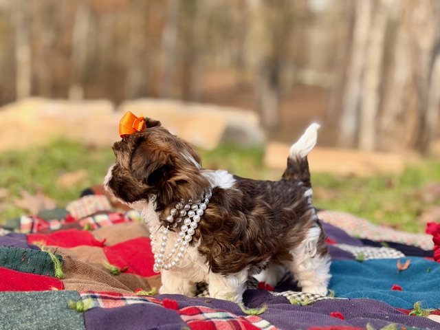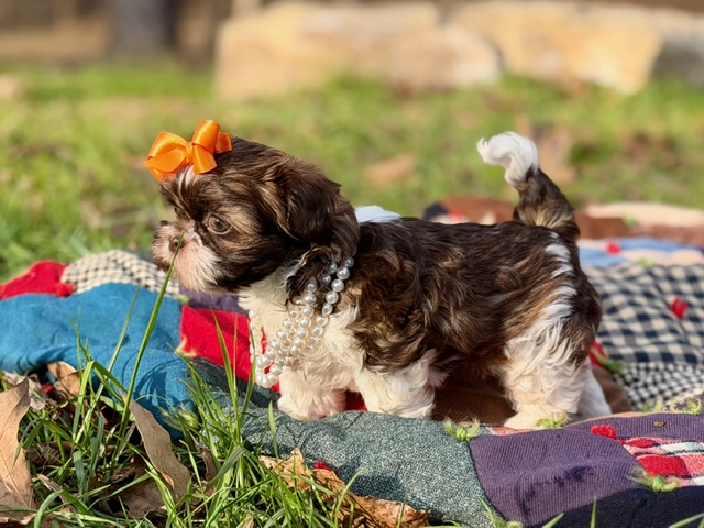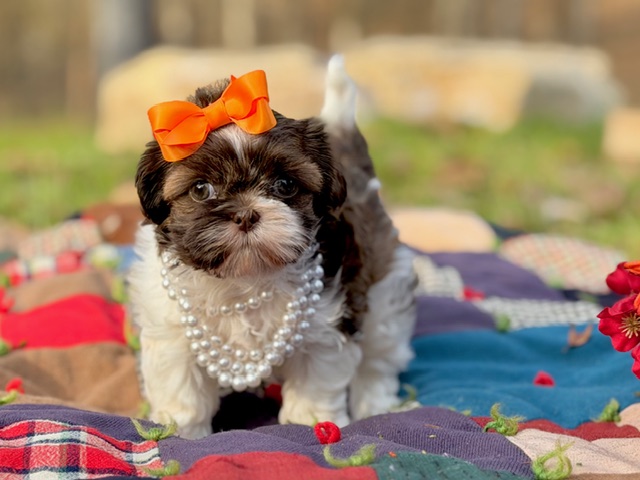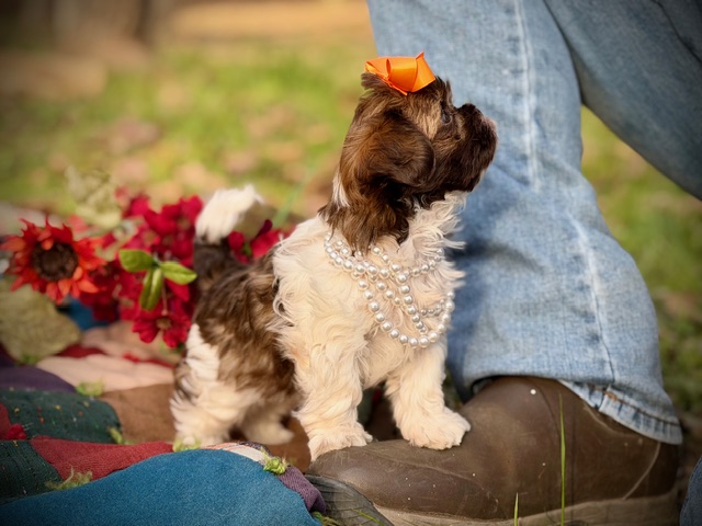 $2,000.00Click Here: More About Daisy- This little Shih-Poo is named Daisy — short legs, compact body, and light eyes that are always taking everything in. She’s curious, smart, and happily outgoing, the kind of puppy who wants to be part of whatever’s happening. Daisy has a funny, confident attitude that makes it clear she may be small, but she’s definitely in charge. 🌼