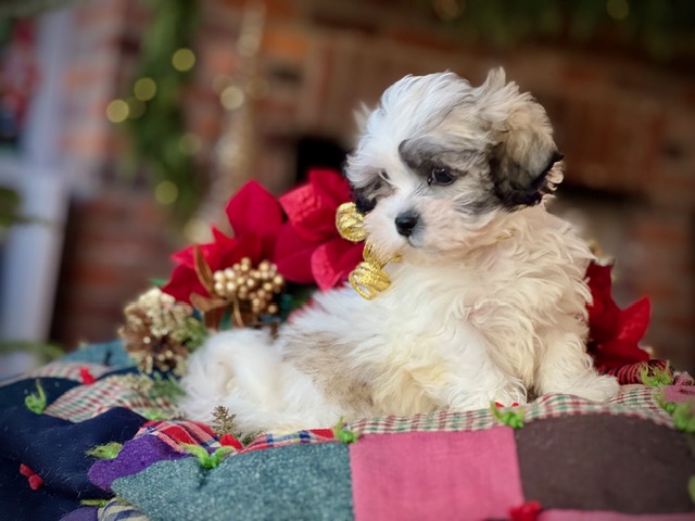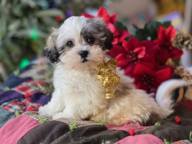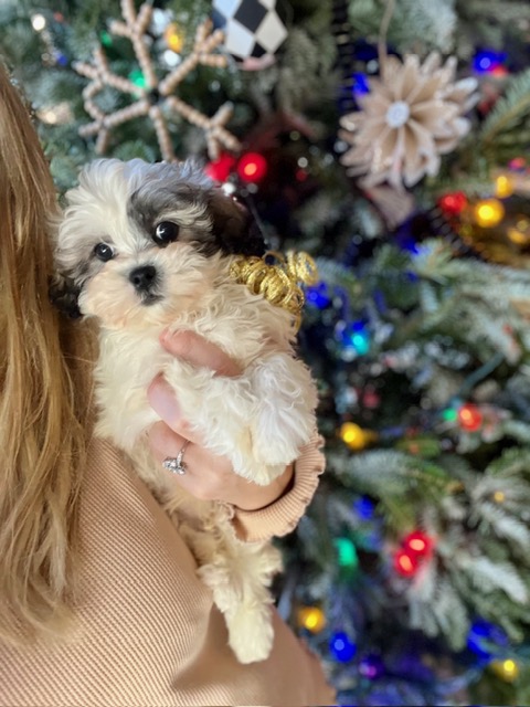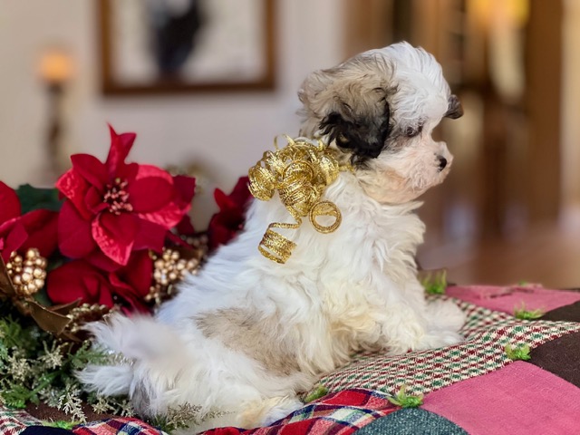 $2,200.00Click Here: More About HamboneThis sweet Shih-Chon pup is all cuddles, soft kisses, and cozy-by-the-fire vibes. With his gentle, loving nature, Hambone is the kind of puppy who wants to be wherever his people are—especially if it involves snuggling. Shih-Chons are wonderful family dogs because they’re affectionate, adaptable, and typically low-shedding, making them great for homes that want lots of love without the mess. Adding Hambone to your family means more joy, more laughs, and a loyal best friend to make every season feel a little warmer—especially the holidays.