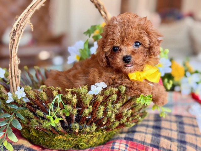 $2,200.00Click Here: More About CloverHi, I’m Clover 🍀—a sweet little Maltipoo with a teddy bear look, a lush coat in a beautifully unique color, and the cutest short legs that carry me everywhere I want to go. I have a gentle, loving personality and enjoy being close, sharing cuddles, and quietly becoming your favorite part of the day. I may be small, but I bring a whole lot of heart with me.