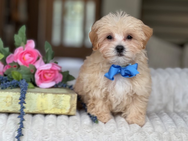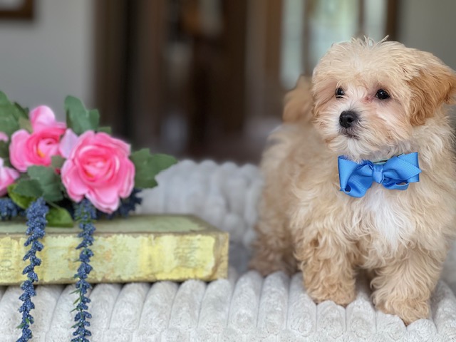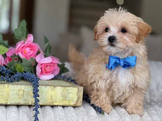 $2,200.00Click Here: More About Chestnut- UMeet Chestnut, the apricot Maltipoo. This charming boy has a beautiful coat of soft curls and a perfect teddy bear face. His gorgeous, dark puppy-dog eyes and warm apricot coloring will lead to Chestnut being the talk of the town!. Wait just a minute… Chestnut has something to say….Hi! I’m Chestnut, and I’m hoping you’ll be my forever family. I’m practicing to be the best friend in the whole world. I dream about playing, going for walks, and cuddling up close every night. I can’t wait to meet you and start our adventure!