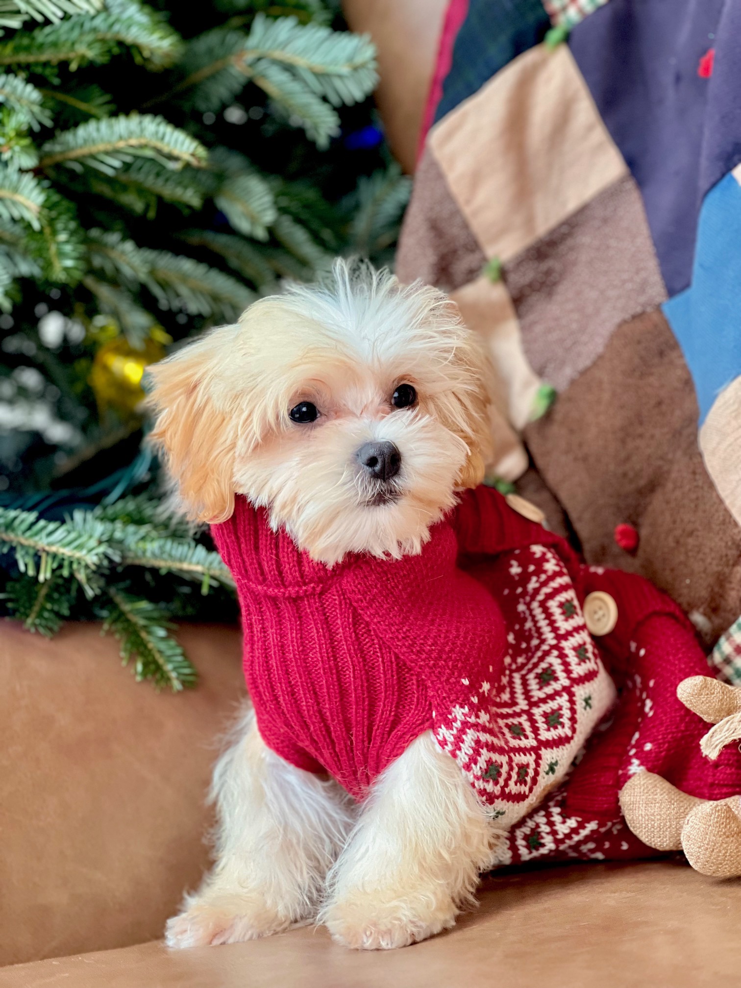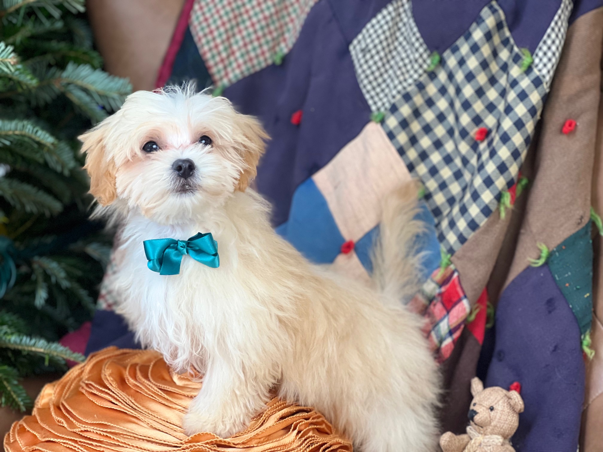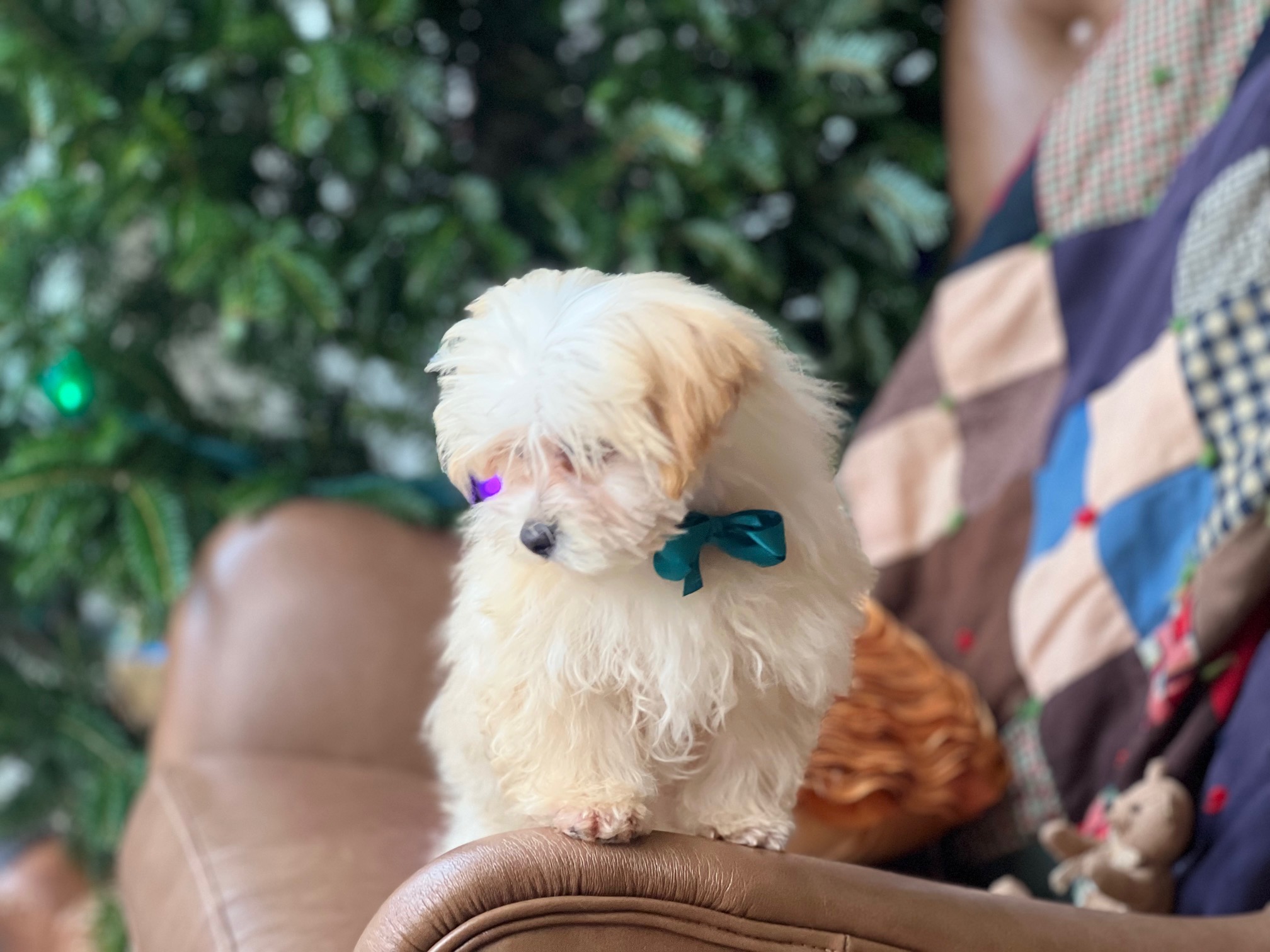 $2,500.00Click Here: More About ButterscotchHi there! I’m Butterscotch, a tiny creamy apricot Maltipoo with soft, squishy curls, bold dark eyes, and a compact little body built for snuggles and zoomies. I’m sweet, playful, and basically your new best friend. Maltipoos make great family companions because we’re small enough to cuddle, big enough to keep up with the chaos, and cute enough to get away with just about anything!