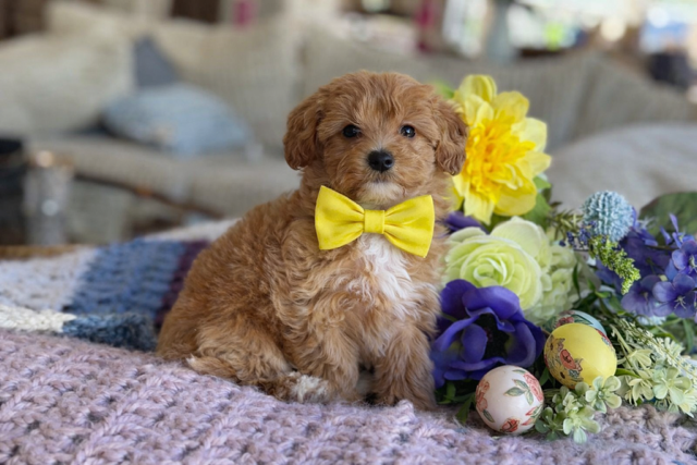$2,500.00Click Here: More About AnnaHi there, I’m Anna… your future little Maltipoo best friend 💕I’ve been told my rich red curls are quite the showstopper—and I have to agree, they’re pretty hard to miss. I may be little, but I’ve got a nicely built, balanced little frame that makes me just right for cuddles, playtime, and everything in between. I’m as sweet as I am pretty, with a gentle, loving personality and just enough playful charm to keep you smiling all day long. Honestly, I’ve been practicing being the perfect companion… I just need my person to take me home 🐾