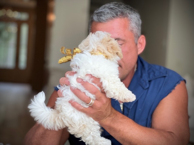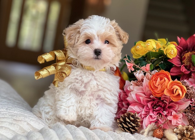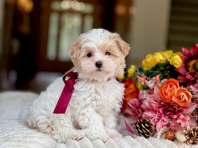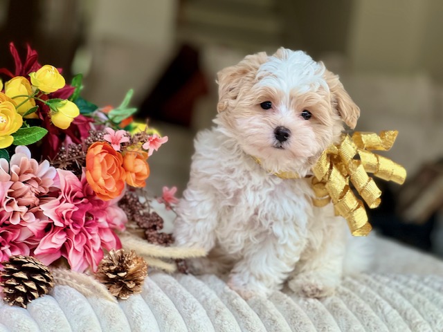 $2,300.00Yes, Can you believe it? You are seeing a real live teddy bear right before your eyes! This little Teddy Bear is a Maltipoo puppy with the most beautiful coloring, and a coat full of soft curls. He is a petite little fella, that should be just the perfect size to go on all of your travel adventures. Don’t miss out on little Teddy Bear!!