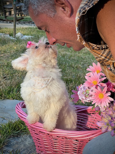 Get ready to fall head-over-heels for Madeline, the sweetest little fluffball you’ll ever meet! She’s a tiny Maltipoo with a soft, snowy-white coat, expressive dark eyes and a perfect little button nose. Madeline is built for snuggling—she is compact and the definition of a lap puppy. While she’s definitely a little cuddle monster who will happily snooze on your chest, she also has a great playful side and is always up for a happy zoomie or a quick game of chase!