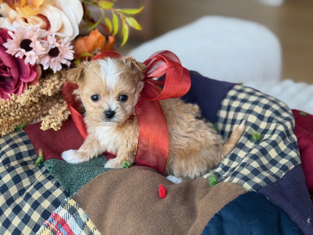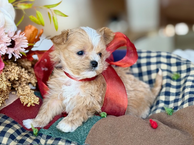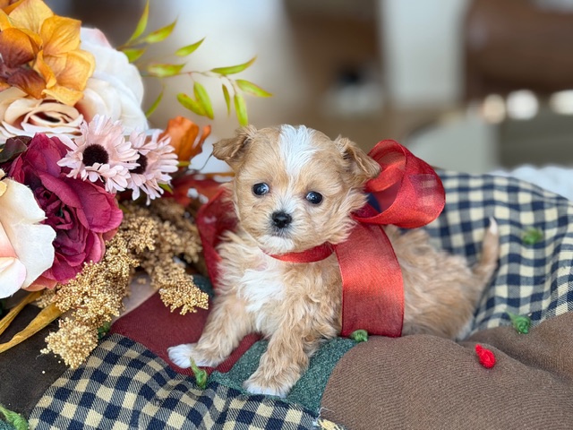$1,800.00Click Here: More About CheddarHi there… I’m Cheddar 🧀 — yes, like the cheese, and I promise I’m just as irresistible. I may be a little Maltipoo guy, but I’ve got a big heart and an even bigger love for cuddles, playtime, and being wherever my people are. I’m smart, sweet, and always ready to make you laugh with my silly zoomies and toy-tossing skills. If your family needs a loyal little sidekick who will stick to you like melted cheese, I’m your boy!
