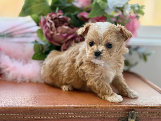 $2,200.00Click Here: More About WesleyWe always said if the “perfect” Maltipoo existed, he’d be sweet-natured, smart, gentle with kids, playful but not wild, and happiest right in the middle of family life. Then along came Wesley. Wesley is the kind of little guy who seems to understand hearts — cuddly during movie night, cheerful during playtime, and polite enough to charm the whole neighborhood. He’s the best of everything we hoped for, wrapped up in one tiny, tail-wagging gentleman.