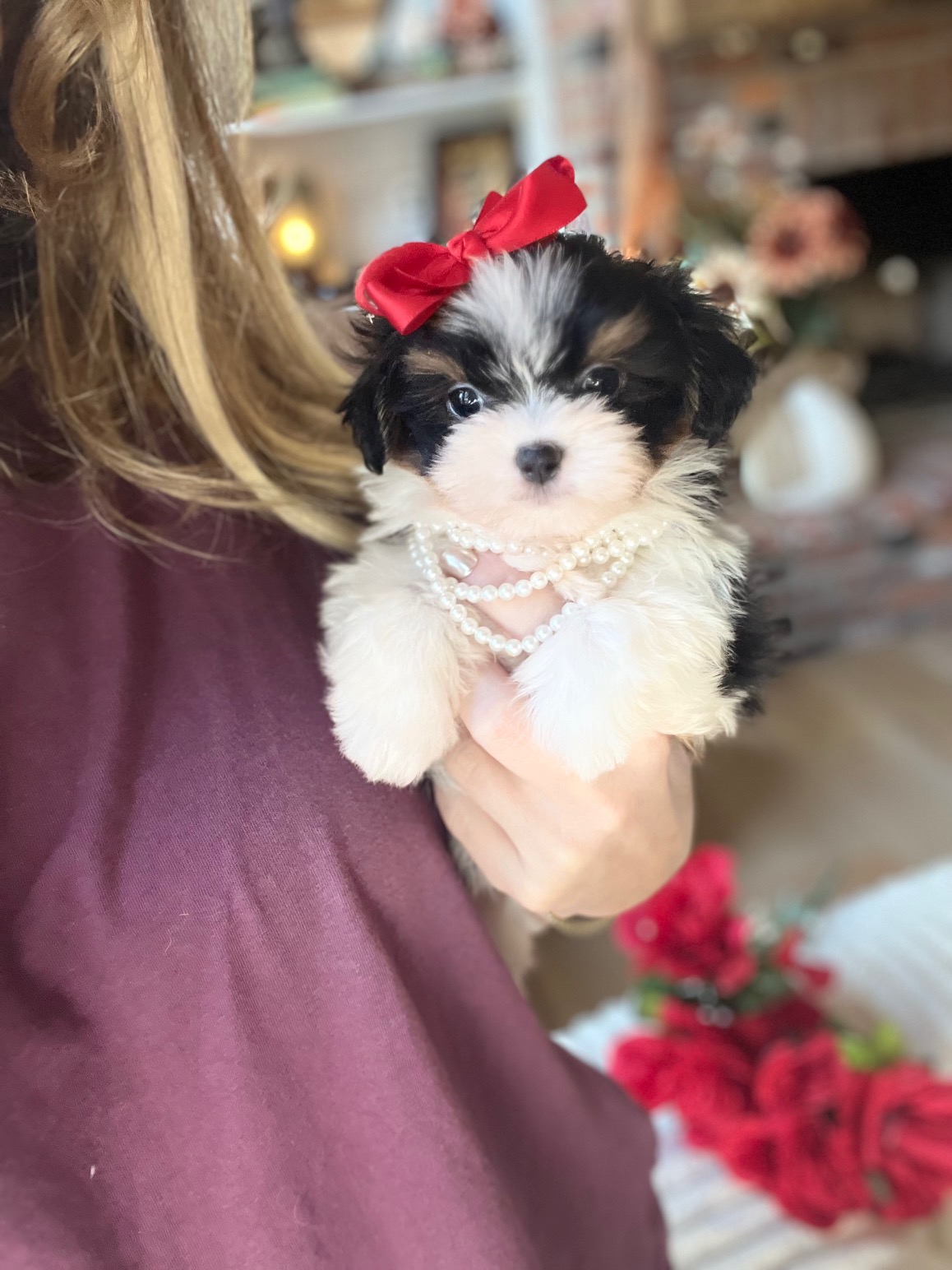 $2,300.00Click Here: More About MinnieThis precious angel is a tiny Mal-Shih puppy. She looks like a big puff ball in her pictures, but she’s really a tiny little puff ball in person, but with just really good hair!! Minnie may be the tiniest pup around, but definitely has an outgoing personality. She is super sweet and fun! Mal-Shi lh are smart, hypoallergenic and low to non-shedding, yippee!! I’m so proud of her!