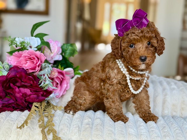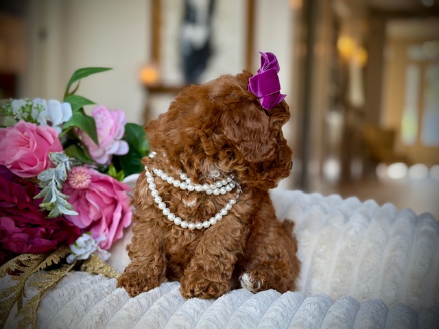 $2,000.00Click Here: More About Pretty GirlHi, I’m Pretty Girl 💕—a tiny red Miniature Poodle with soft curls, bright curious eyes, and a whole lot of love packed into this little body. I adore cuddles, learn quickly, and follow my people like a fuzzy little shadow. Poodles are smart, gentle, and great with families, which means I’m the kind of pup who fits right into your heart (and your lap). If you’re looking for a sweet best friend with a touch of sass and endless kisses, I might just be your girl. 🐾🎀