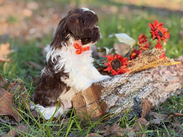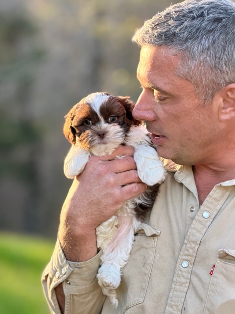 Hi, I’m Peanut 🥜—a Shih-Poo with dreamy light eyes, a milk-chocolate-and-white coat, and a personality that’s just as sweet as my name. I’m curious, playful, and pretty sure I was born to make people laugh (and fall in love). I love exploring the world around me, soaking up attention, and being right where my people are. Small in size but big on charm, I’m ready to wiggle my way straight into your heart.