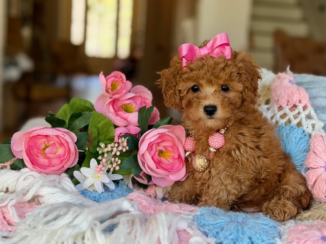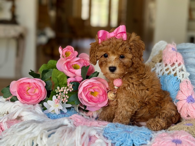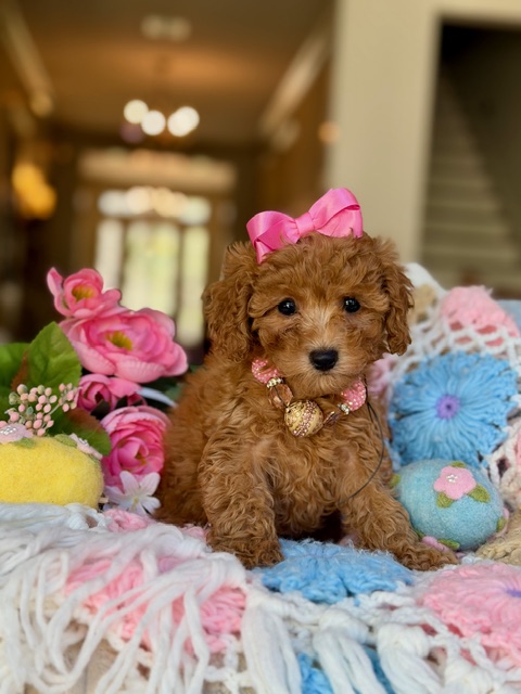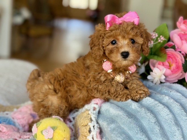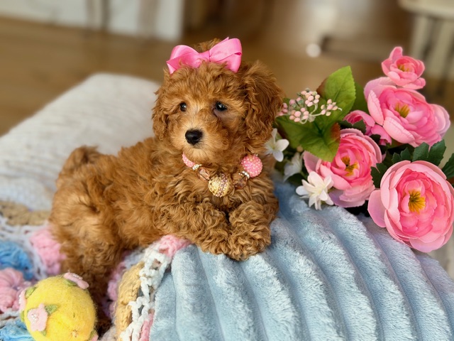 $2,500.00Click Here: More About BellaHi there… Could I be your future little girl!?! 💕 My name is Molly and I have the most beautiful apricot coat with soft, lush curls and just the sweetest little white markings placed perfectly like I was designed that way. I’m fun, outgoing, and full of personality—I love to play, explore, and then melt right into you for cuddles. And yes… I’m so soft and snuggly, you might never want to put me down. I’m just waiting for my forever family… maybe it’s you? 🐾