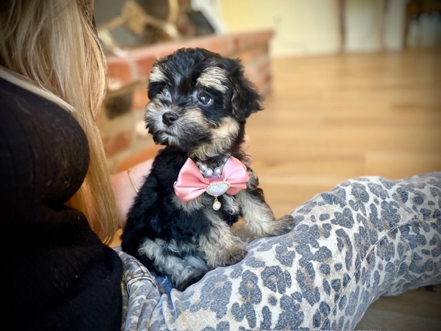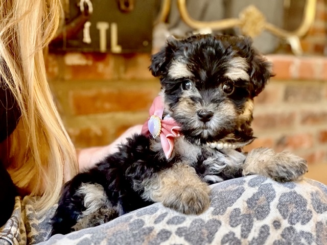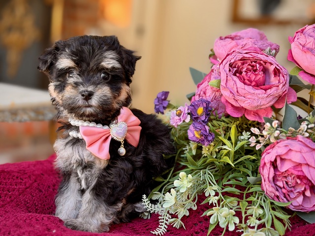This is Princess Petunia—a tiny little Maltipoo with a soft, cloud-like coat and eyes that seem to follow you everywhere. She’s got that perfectly rounded teddy bear look, paired with a compact little frame that makes her feel like she was made to fit right in your arms. There’s something quietly charming about her… the kind of puppy that doesn’t need to try too hard to steal your heart.