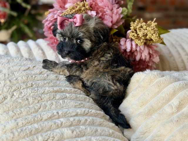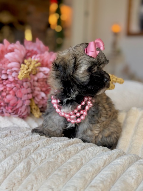 $2,000.00Click Here: More About CappiMeet Cappi — short for Cappuccino, and just as sweet and comforting as her name 🤎☕ With her rich, chocolatey shine, perfect teddy bear face, compact little body, and adorable short legs, she’s a true heart-stealer. Shih-Poos make wonderful family companions because they’re affectionate, gentle, and love being right where their people are — and Cappi is ready to warm your home just like your favorite cup of coffee.