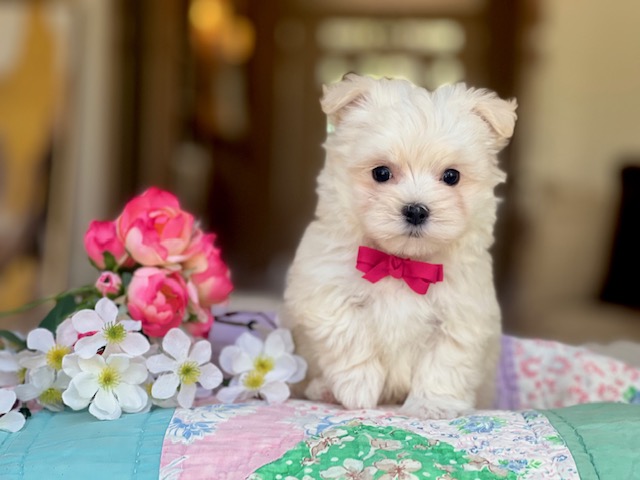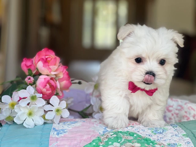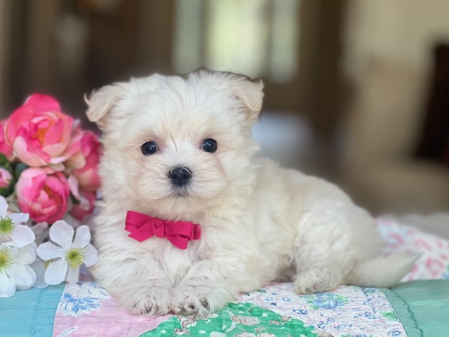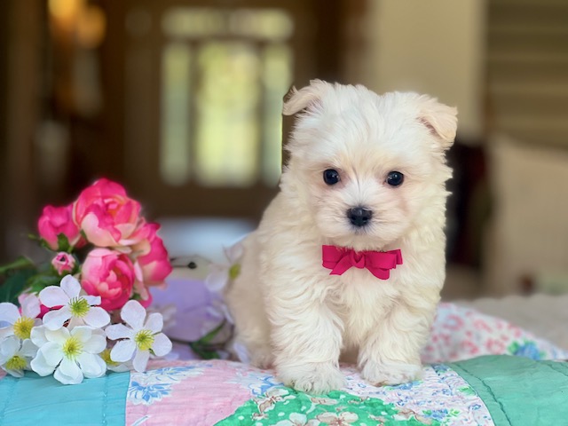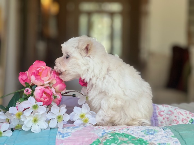 Sawyer is an adorable little Morkie with a fluffy, soft white coat and a teddy bear face that makes everyone smile. He loves to scamper around, playing with his tiny toys and rolling over for belly rubs, which he could enjoy all day long. With his small, compact body and cute short legs, he’s just too sweet to resist! One of the best things about having a puppy like Sawyer is the joy and laughter they bring into your life.