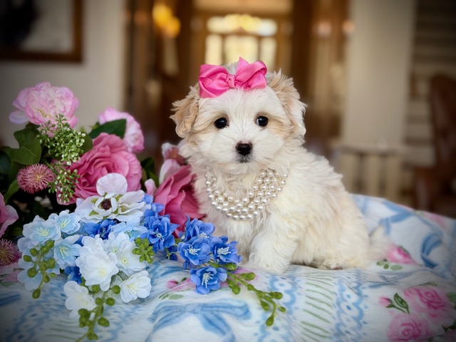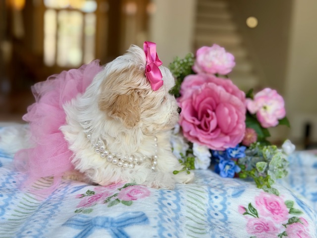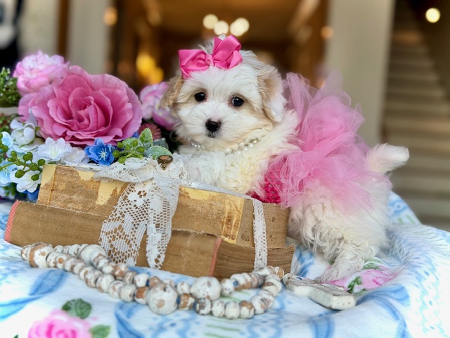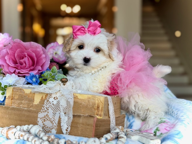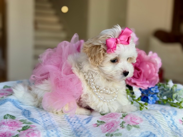 $2,200.00Click Here: More About AngelAngel is a sweet little Maltipoo with soft, light coloring and a gentle way about her that just fits her name. She’s calm, affectionate, and loves being close, quietly winning hearts without even trying. Angel has that easy, comforting kind of charm that makes her feel special the moment you meet her.