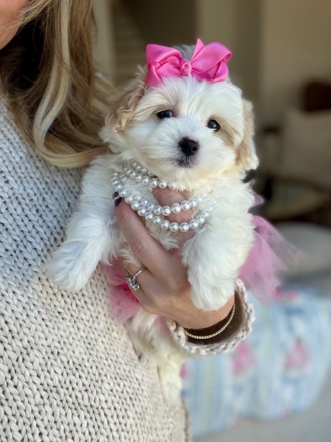 $2,500.00Click Here: More About SeraphinaHer name is Seraphina — a sweet Maltipoo with soft fluffy hair, bright eyes, and the cutest little puppy mannerisms. She enjoys being held, playing gently, and following her people around, always happy and curious. Seraphina has that easy, lovable personality that makes you smile without even thinking about it.