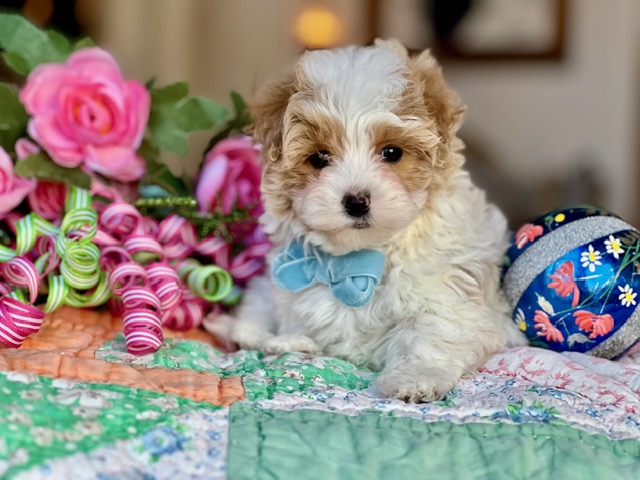 $2,200.00Click Here: More About WafflesMeet Waffles, a teddy bear–looking Maltipoo with cute short legs, a compact little body, and a fun-loving personality that keeps things entertaining. He’s always ready to play, cuddle, or just follow you around like you’re the best thing that’s ever happened (because you are). Having a puppy like Waffles in your home means more laughs, less stress, and a built-in reason to smile every single day—plus, he’s excellent at reminding people to slow down and enjoy the little things. *Please note that there is a possibility that Waffles may not be ready in time for Christmas. It’s just according to how he is doing weaning from mommy.