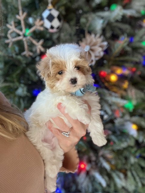 $2,200.00Click Here: More About SnowmanHi, I’m Snowman 🤍 Just look at my fluffy curls and my little button nose—I’m basically a walking teddy bear. I’m a sweet Maltipoo boy with a calm, loving heart and the softest fur, perfect for cozy cuddles by the tree. I love people, gentle playtime, and being held close like I am here. I’m the kind of pup who brings comfort, smiles, and a little extra magic wherever I go, and I can’t wait to be part of your family. 🐾✨ *Please note that he will be of age to go home before Christmas. With the timeline so close there may be a chance he will not be able to go home before Christmas if he’s not completely weaned and ready for his new home.
