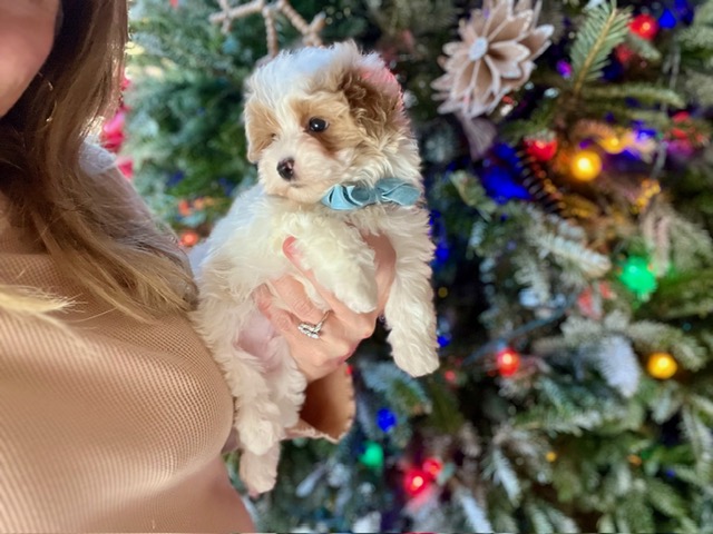 $2,300.00Click Here: More About LovelyHi, I’m Lovely 💕 I’m a sweet little Maltipoo girl with fluffy curls you can’t help but touch and a teddy bear face that gets me lots of compliments. I’m outgoing, happy, and always ready to be right by your side—whether that’s playing, cuddling, or following you from room to room. I can’t wait to be your best friend and bring extra love and smiles into our home. *Please note that she will be of age to go home before Christmas. With the timeline so close there may be a chance she will not be able to go home before Christmas if she’s not completely weaned and ready for her new home.