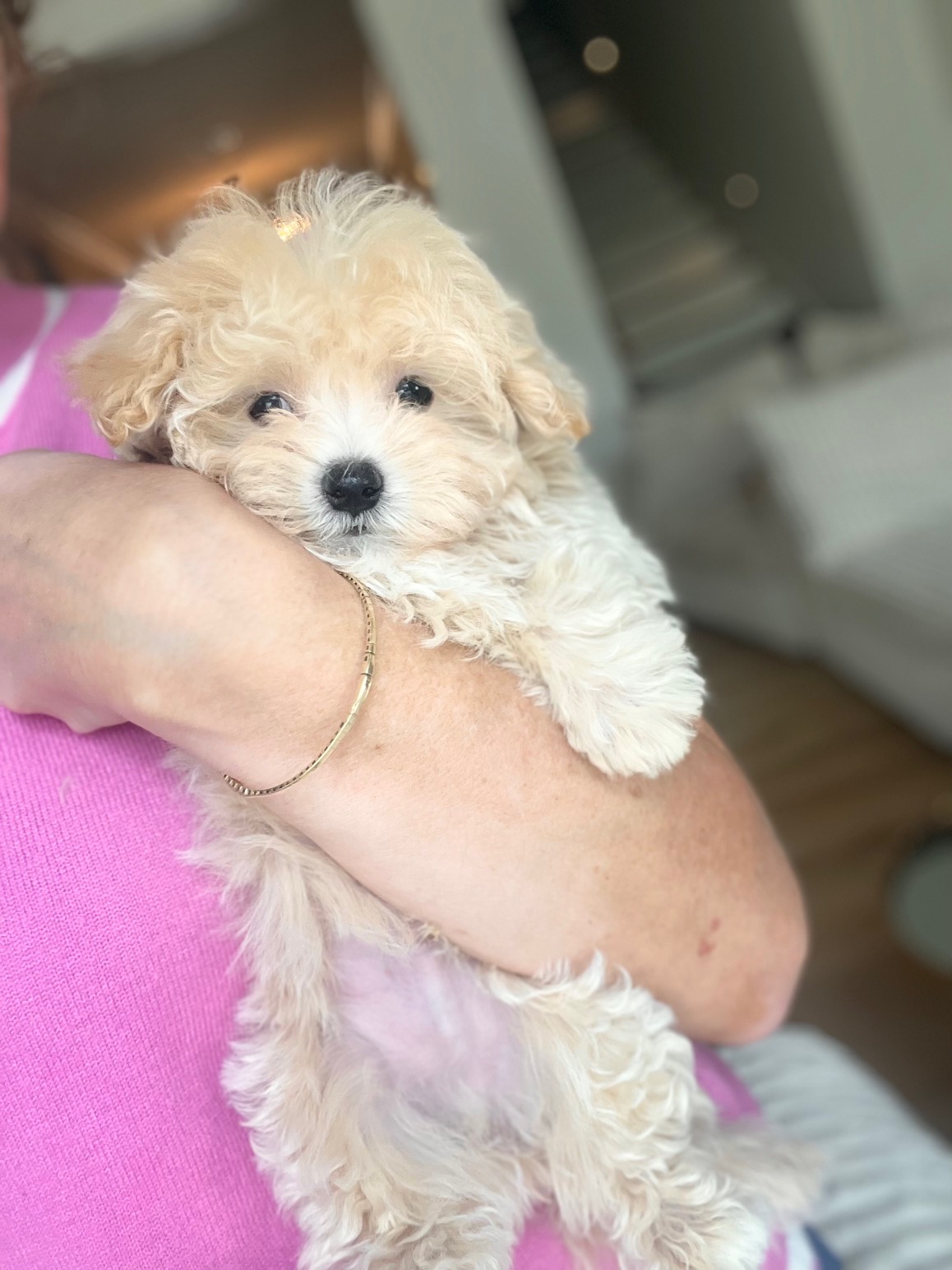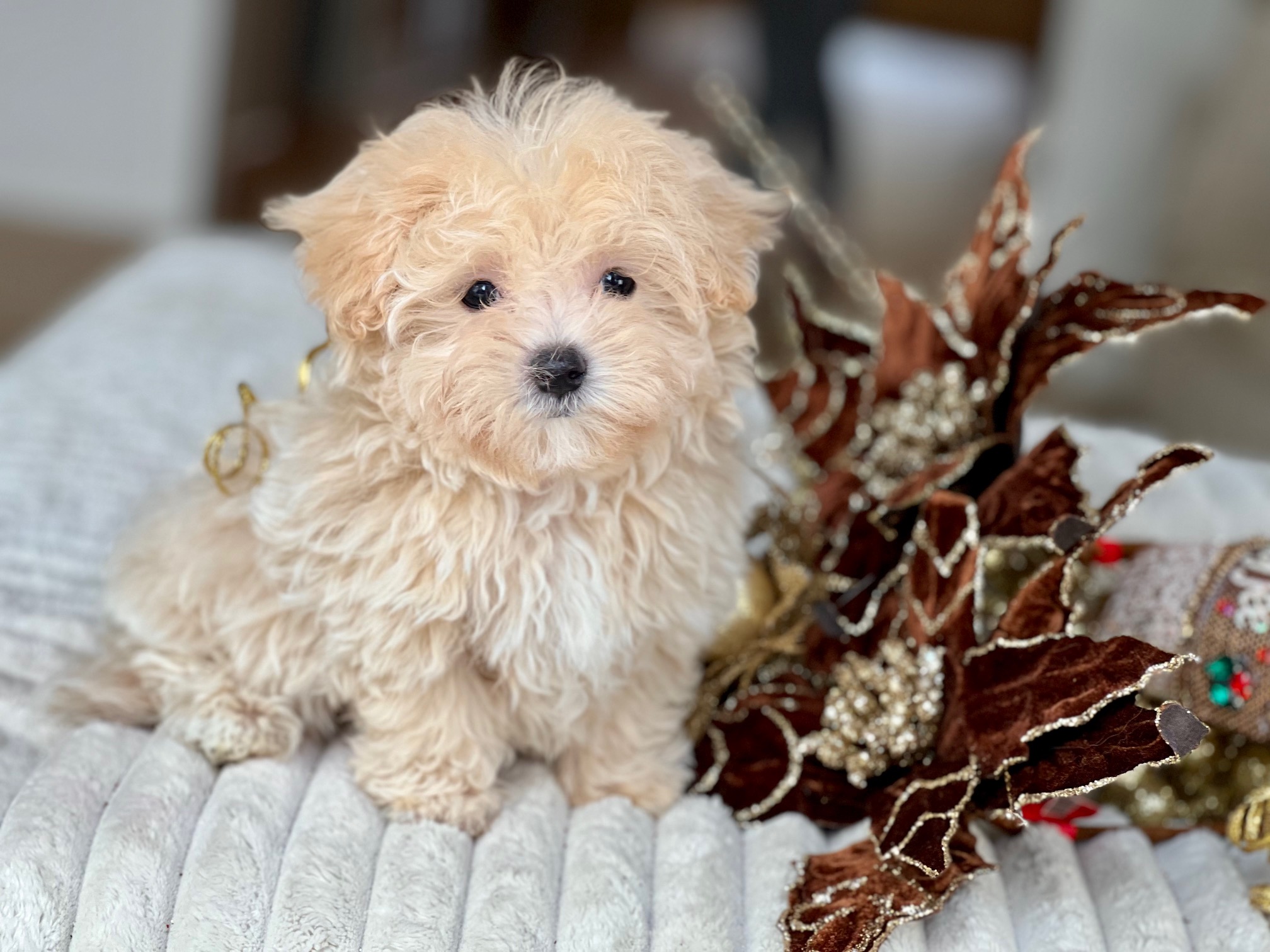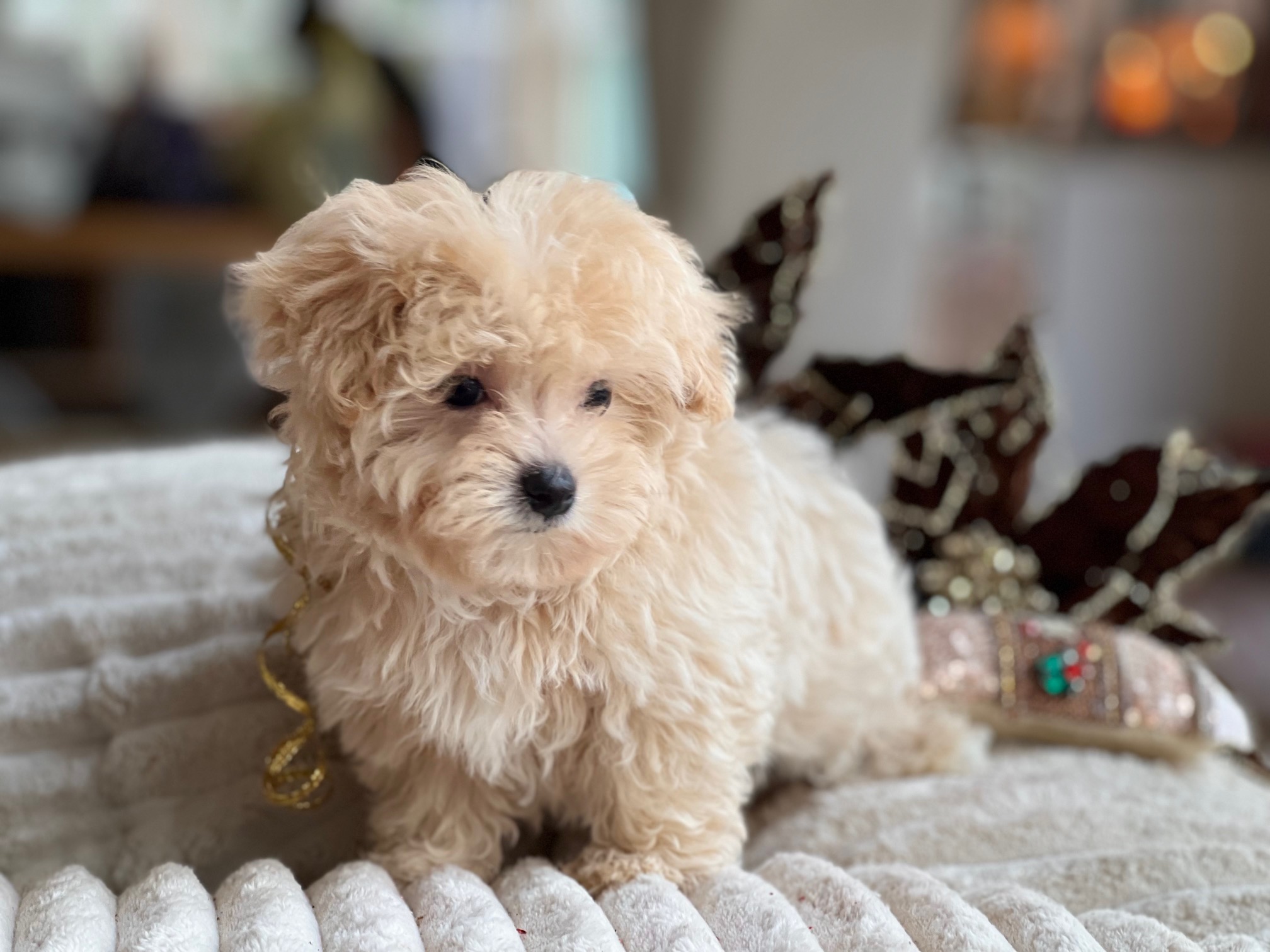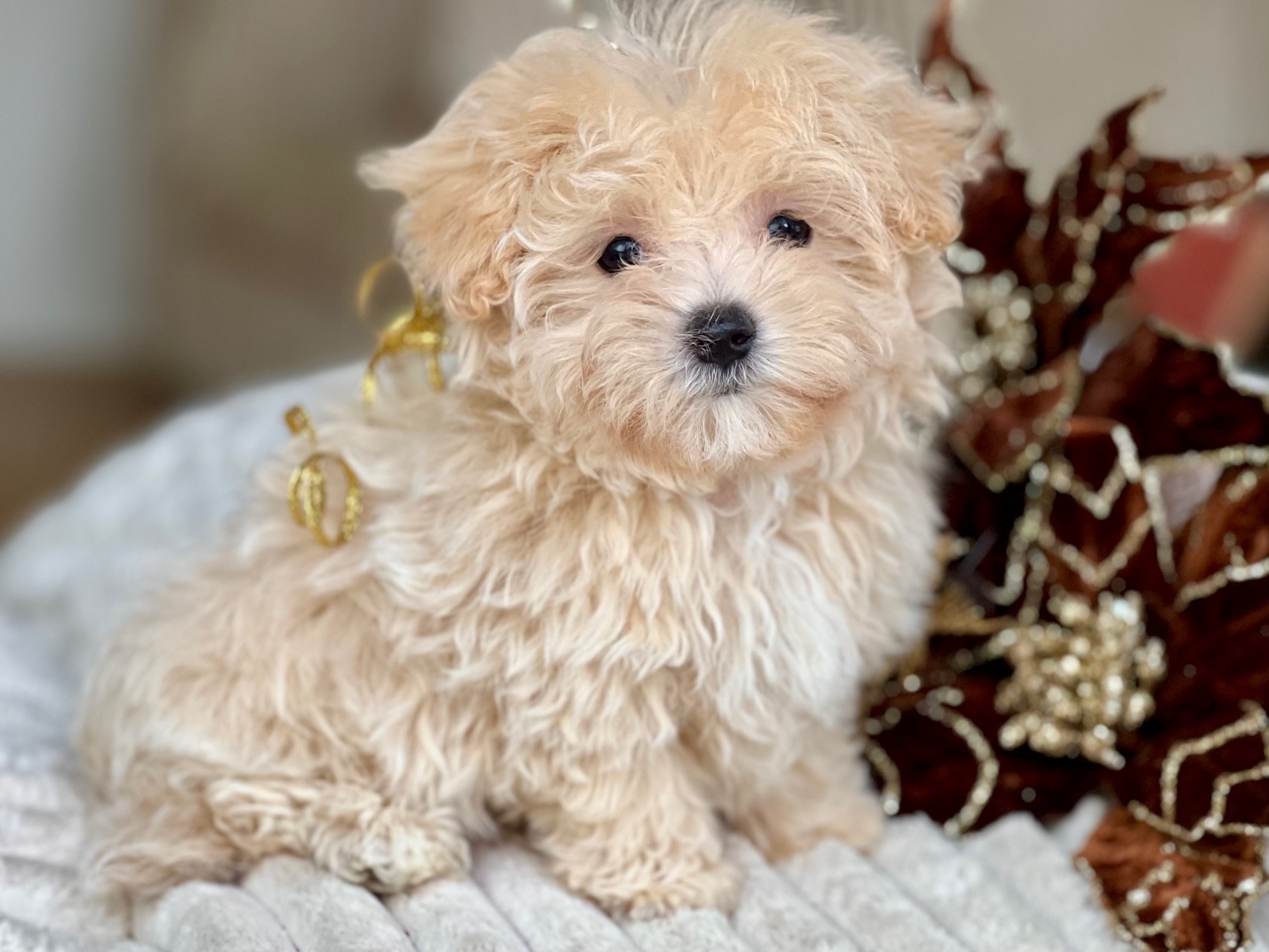 $2,200.00Click Here: More About StitchHi there! I’m Stitch, a creamy apricot Maltipoo with short legs, a compact little body, and the perfect take-me-anywhere size. My dark eyes always sparkle—especially when I’m hoping for cuddles or a spot by the fireplace. I’m sweet, a little silly, and I love making people smile. If your family is wishing for a cozy, joyful holiday season, I’m pretty sure I’m the gift that keeps on giving. Bring me home, and I’ll fill your days with warm snuggles and all the love a tiny pup can offer.