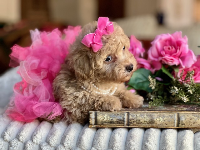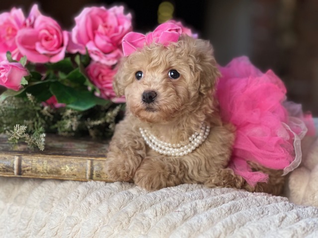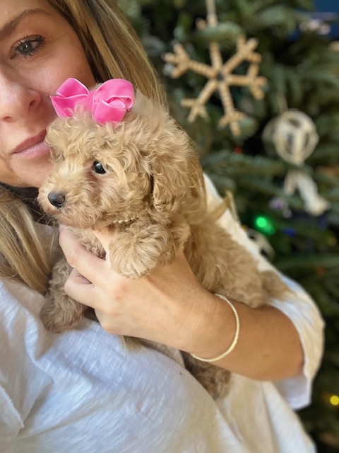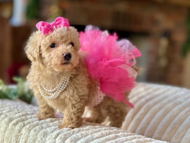 Meet Sugarplum, a creamy apricot Poodle with a sweet, gentle spirit that feels just like a cozy holiday hug. Her festive name suits her perfectly—soft, warm, and full of Christmas charm. If you’re looking for a loving, loyal companion who brings joy all year long, Sugarplum would make the perfect addition to your family.