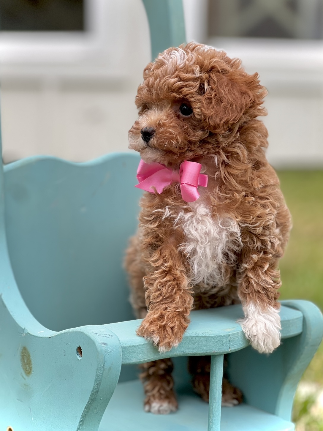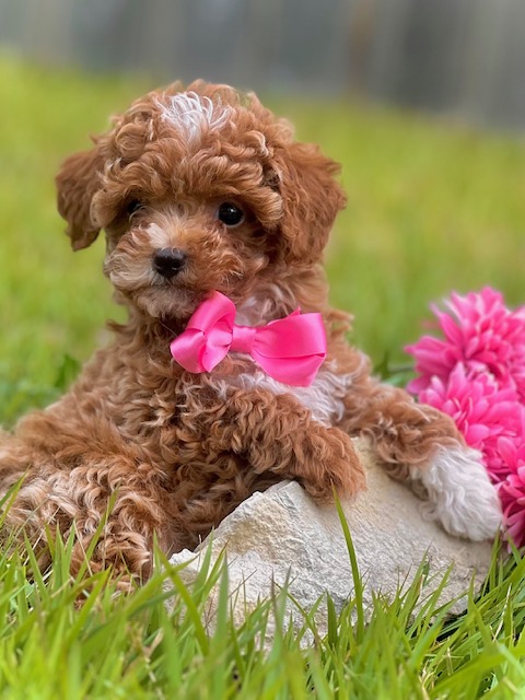 $3,000.00Click Here: More About Curly SueWhat a pretty little Princess Puppy!! This sweet girl is perfection! She is smart, fun, super soft, loving and sooooo much more. Curley Sue has that gorgeous red coloring, petite compact body, and perfect teddy bear face. Can u image sticking her in ur purse for all of y’all’s fun adventures! Call about her today!