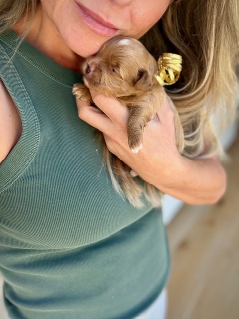 Hi there… I’m Toffee.🤎My name fits me just right—soft, warm apricot coloring that looks just like a little swirl of sweet toffee. I’m tiny, snuggly, and already practicing being the perfect cuddle buddy. I’m also just the perfect little travel size, ready to tag along wherever life takes you. Morkies make such wonderful family companions because we’re loving, loyal, and happiest right by your side—small in size but full of heart and personality 🐾